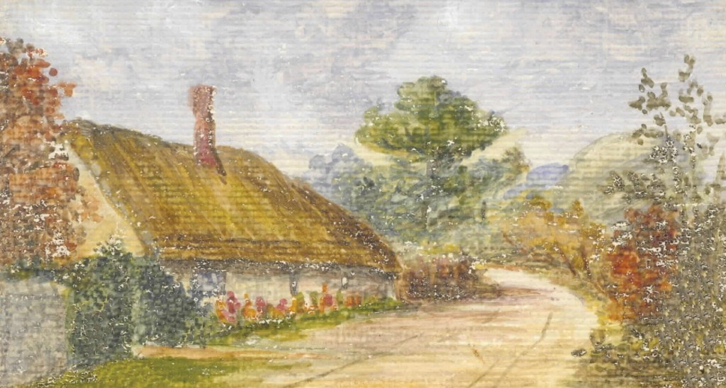 Painting of the Poorhouse beside Binsted Church, by Charlotte Read