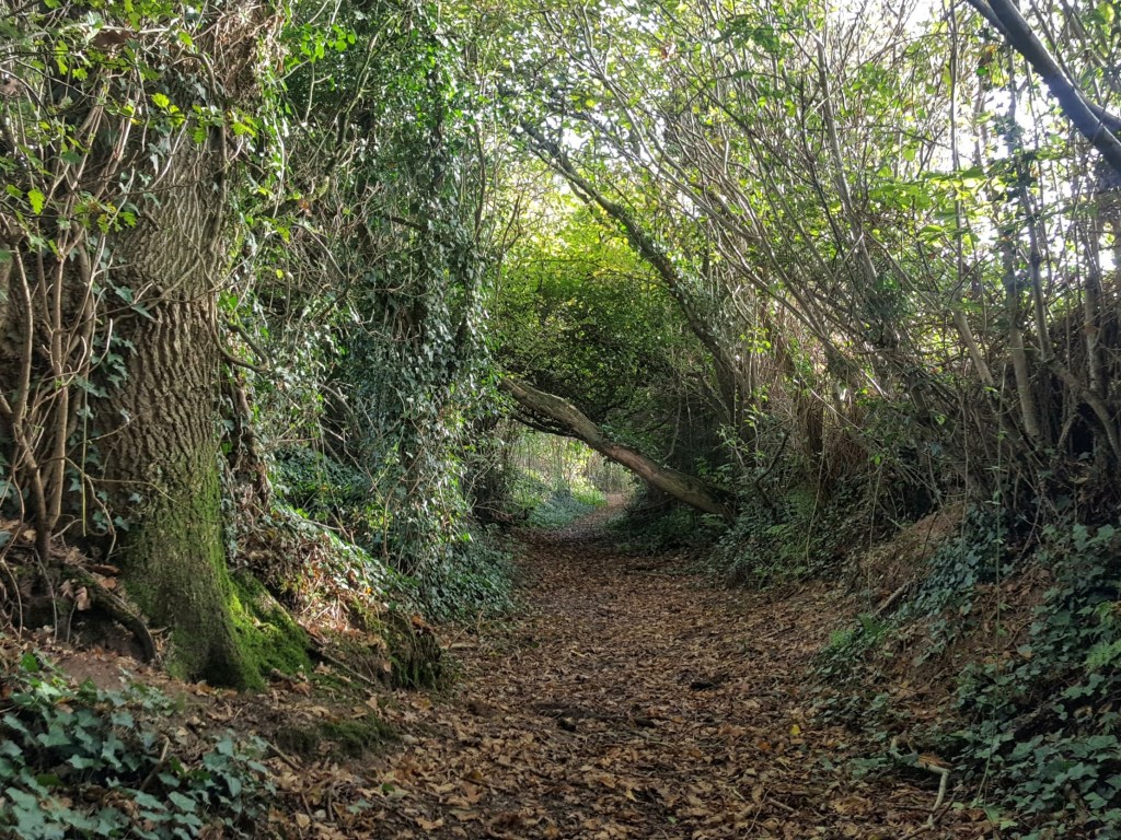 Sunken lanes, or holloways (from Old English hola weg: sunken way) are thought to have been shaped by centuries of foot traffic. Binsted has a few, such as the magical Hoe Lane. Coppiced trees on its banks likely go back centuries. Today it leads to footpaths that take you out to the sea, or east towards Tortington and Arundel.