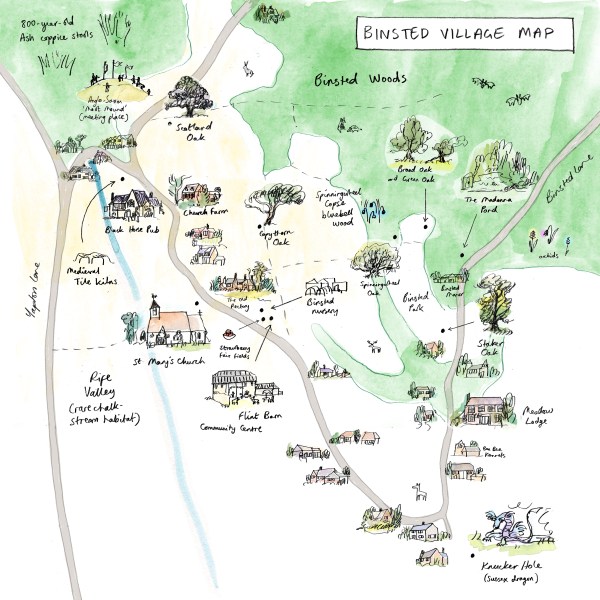 Here is a map of Binsted. There wasn't room for every house. But it gives a sense of how the village and its history fits together. The Oaks run down diagonally from near top left: Scotland Lane; Copythorn; Spinningwheel; Staker. (Broad and Green are off doing their own thing in a clearing beside the woods.)... Continue Reading →