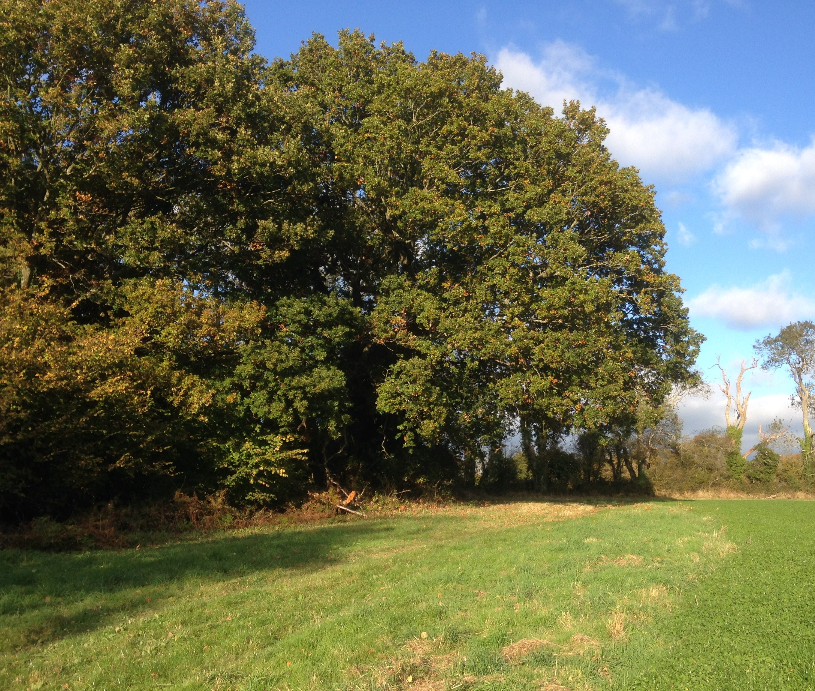 At the heart of this circle is the Spinningwheel Oak. Beside it, a large pit shows the place where chalk was once dug out – a practice to make the land fertile.