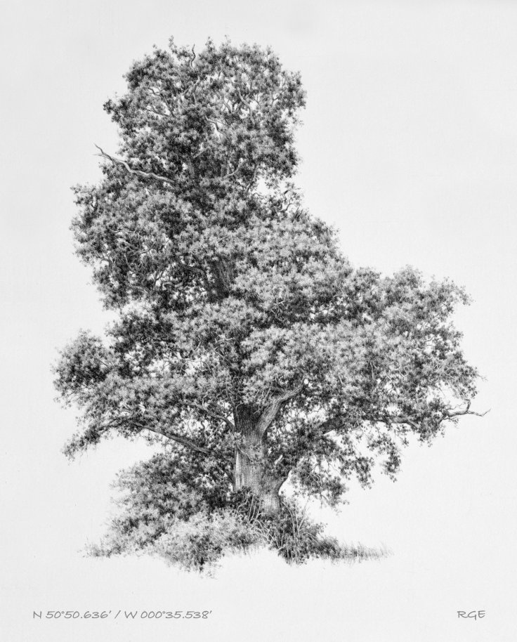 The Staker Oak tells its first story at a glance, its very shape an echo-form of the woodland that may have once surrounded it. Oaks, like many species, grow tall and narrow among other trees. Staker perhaps enjoyed a century in close company, before, in the early 1800s, the Read family of Binsted House cleared the area to make Binsted Park.